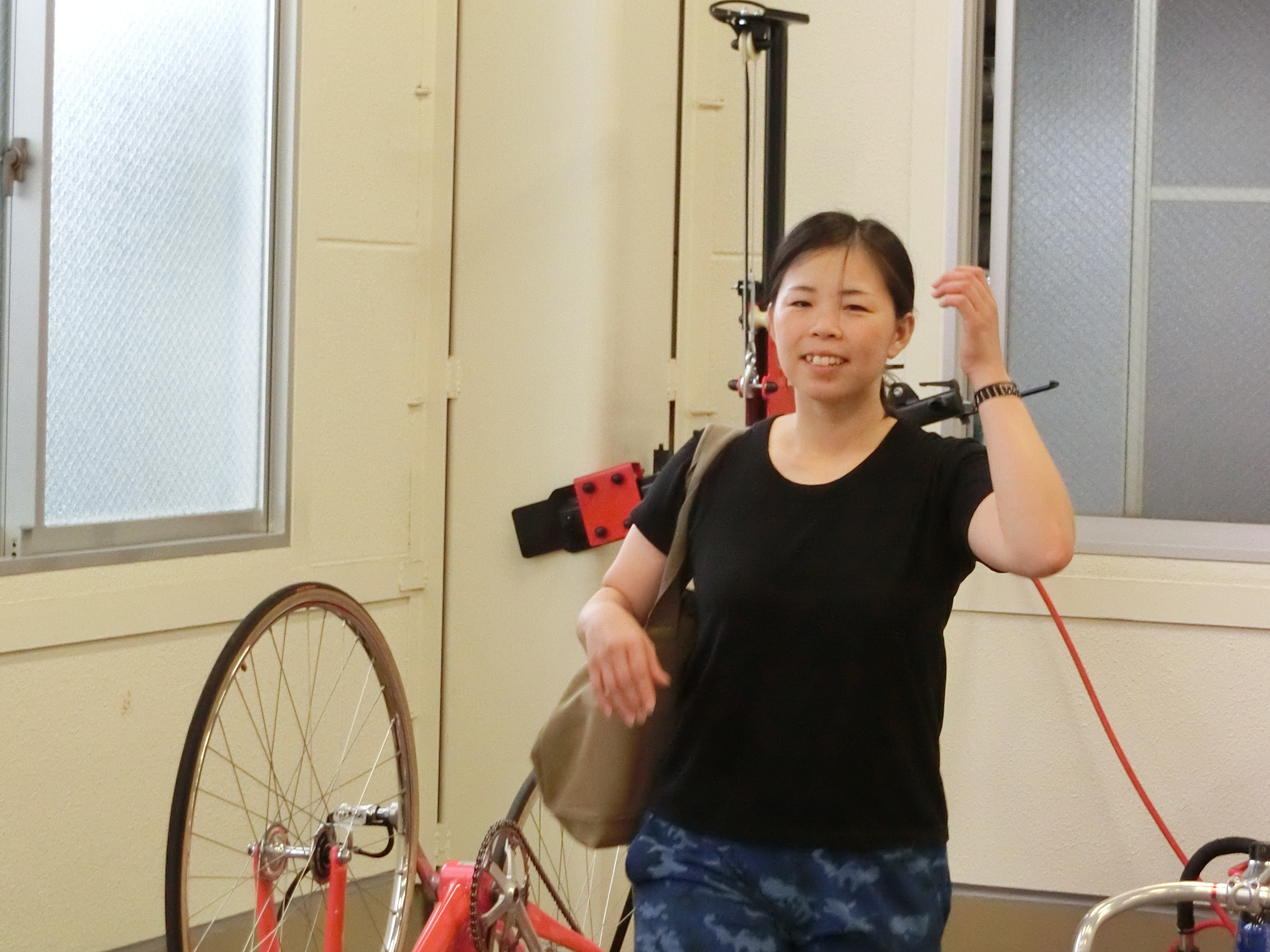 着替えた後、自転車の調整に検車場にやって来た山本選手は「1Rの選手紹介がバンク周回でなく敢闘門前での一礼だったんで、『やるんだ』とは思いましたけど、その直後に強烈な雨・風が吹き降りになったんで中止になったんでしょう。しょうがないですね」と、淡々と中止までの状況を振り返ってくれました。