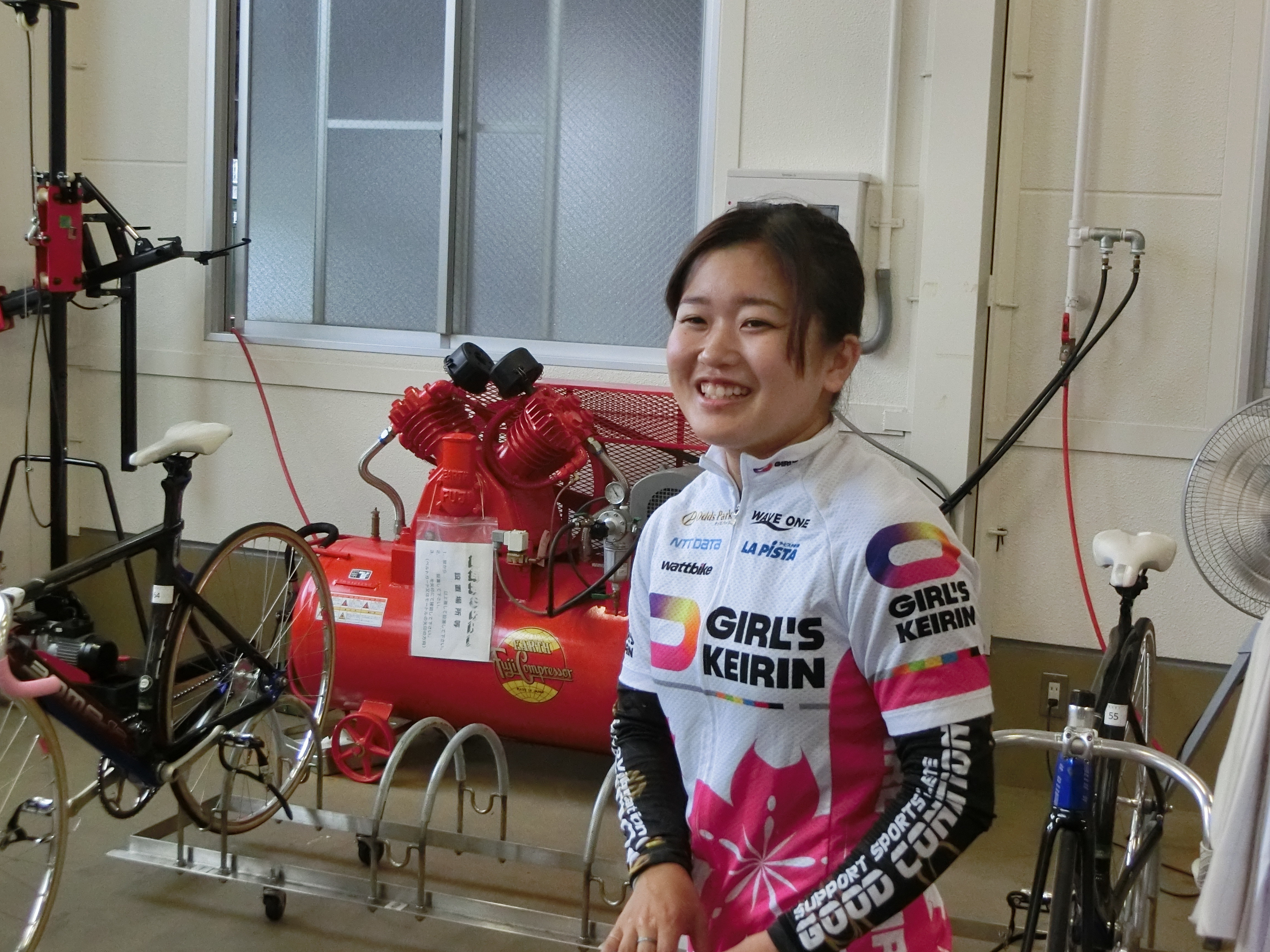 まず布居選手は「中止は初めてです。1番車になるのも初めてだったんでしたが、明日は2番車に変わるんですね」と、ちょっぴり残念がっていました。調整は「軽めにローラー乗りました」とのこと。