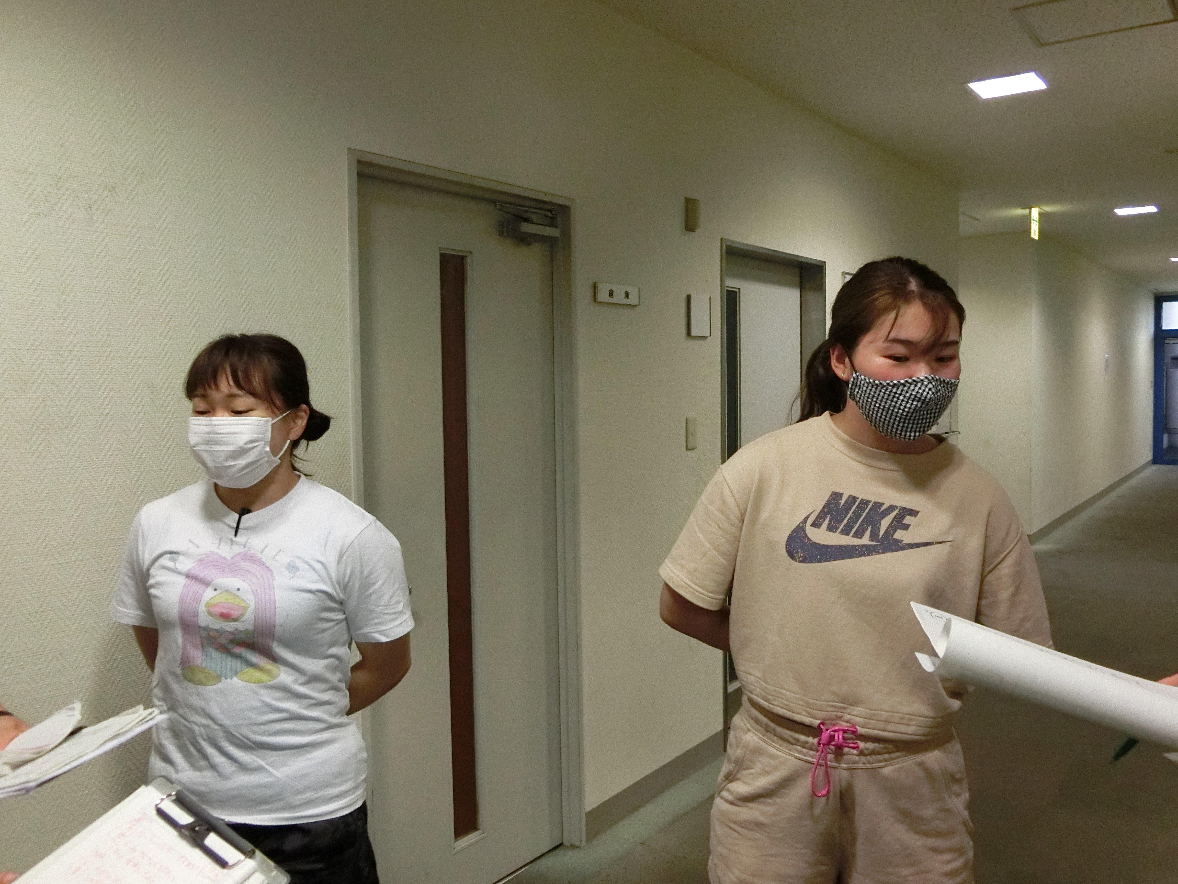 あとは記者さんのリクエストで、1R・2Rそれぞれで本命視されていた坂口・宮地両選手に来てもらうことに。ほどなく2人が選手宿舎1Fのエレベーター前ロビーに現れ、取材が始まります。
