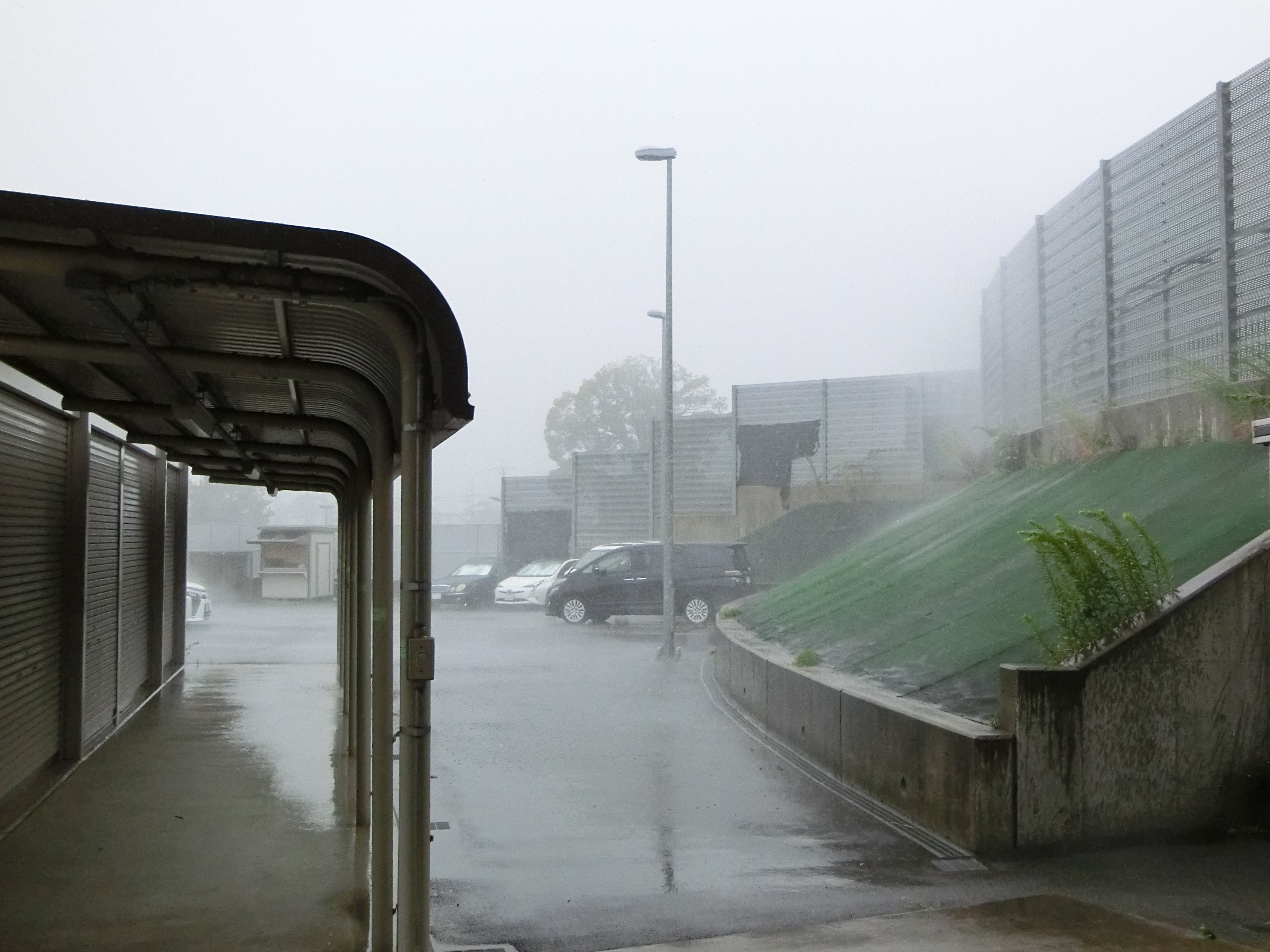 宮地選手の写真を撮り終えて、男子選手にもコメントを聞こうと検車場に再度戻った所、猛烈な暴風雨が降っていました。本来なら男子選手のレース時間でしたが、この雨なら中止にしておいて正解だったのかとも思いました。