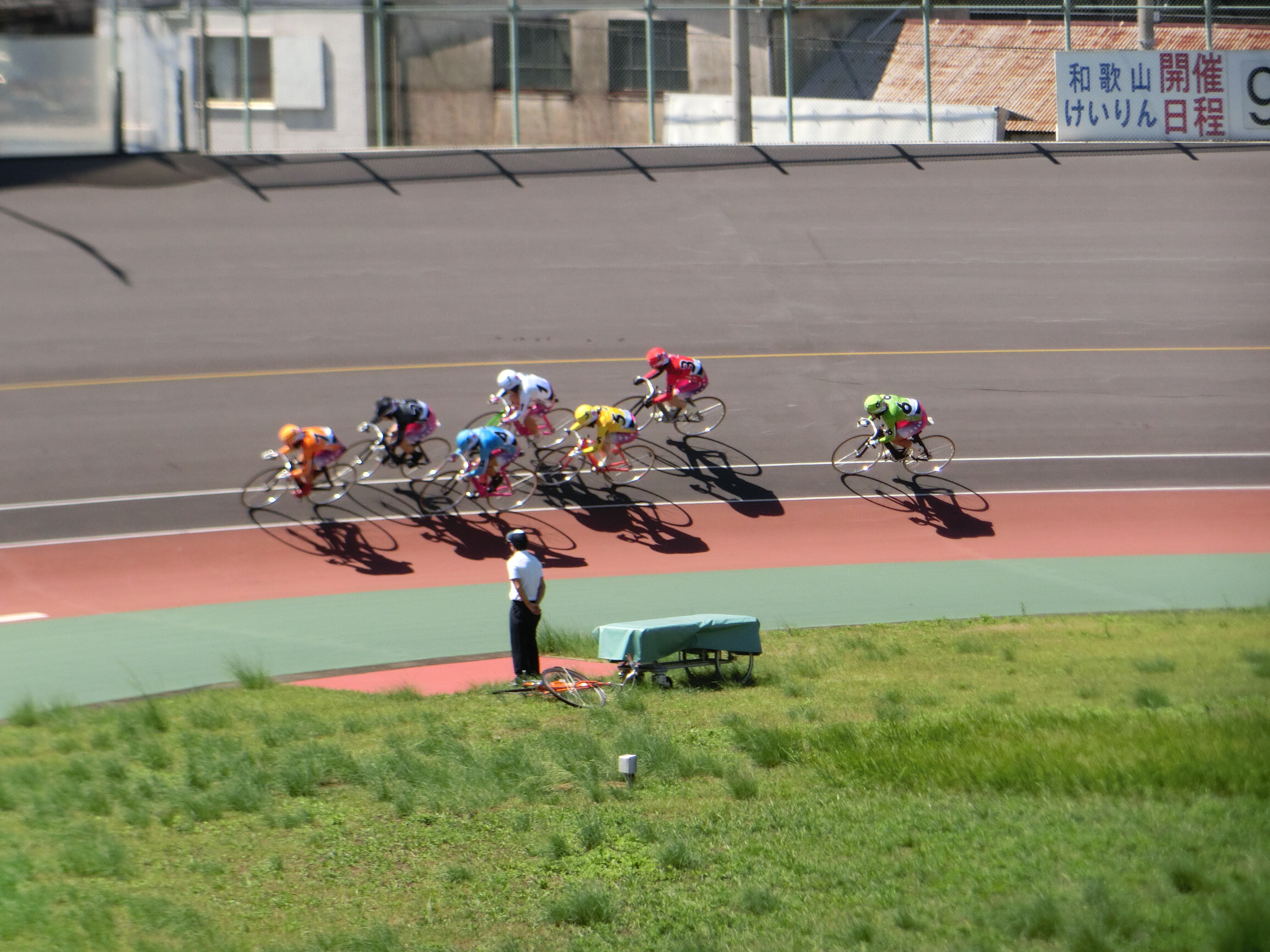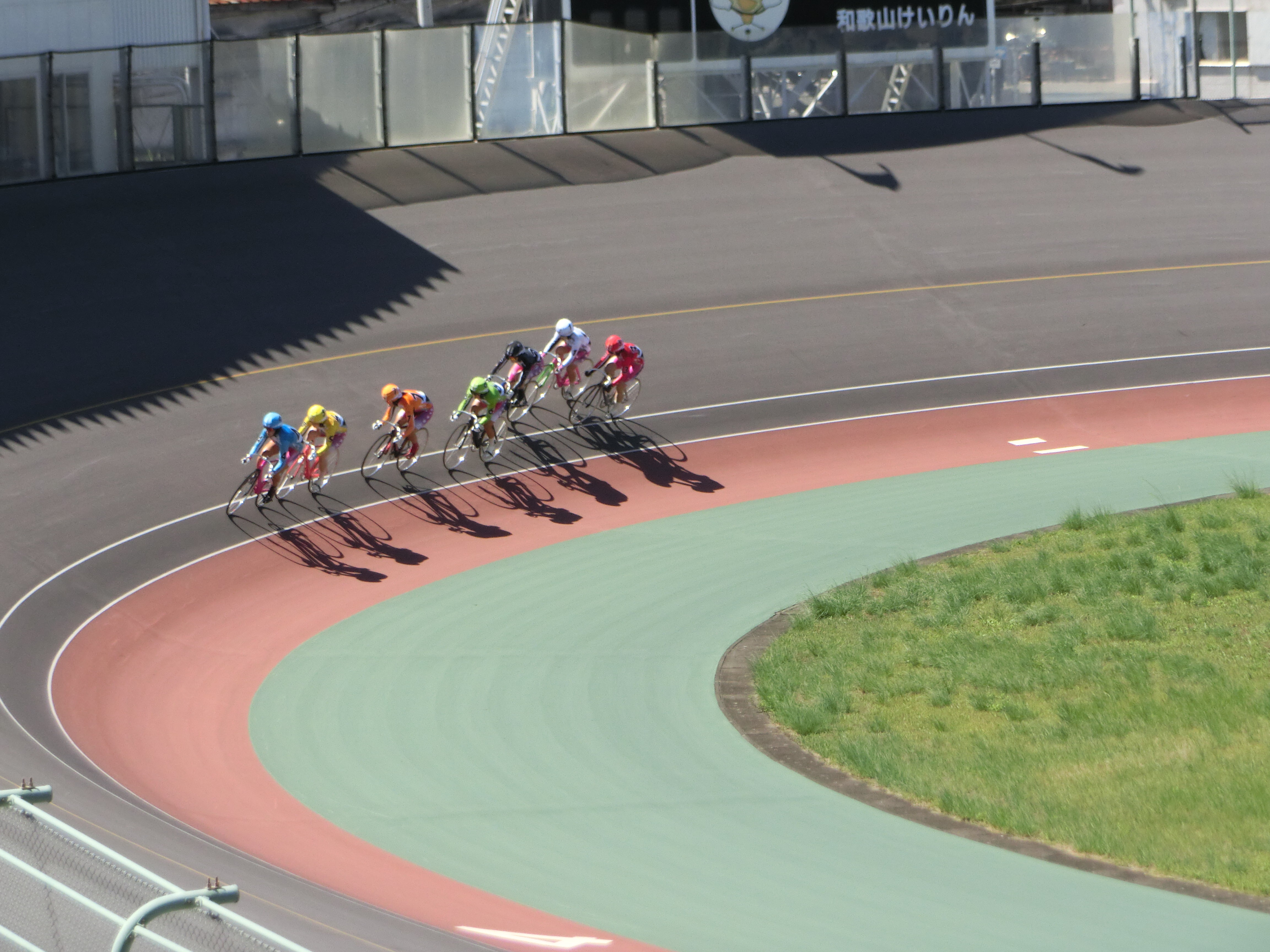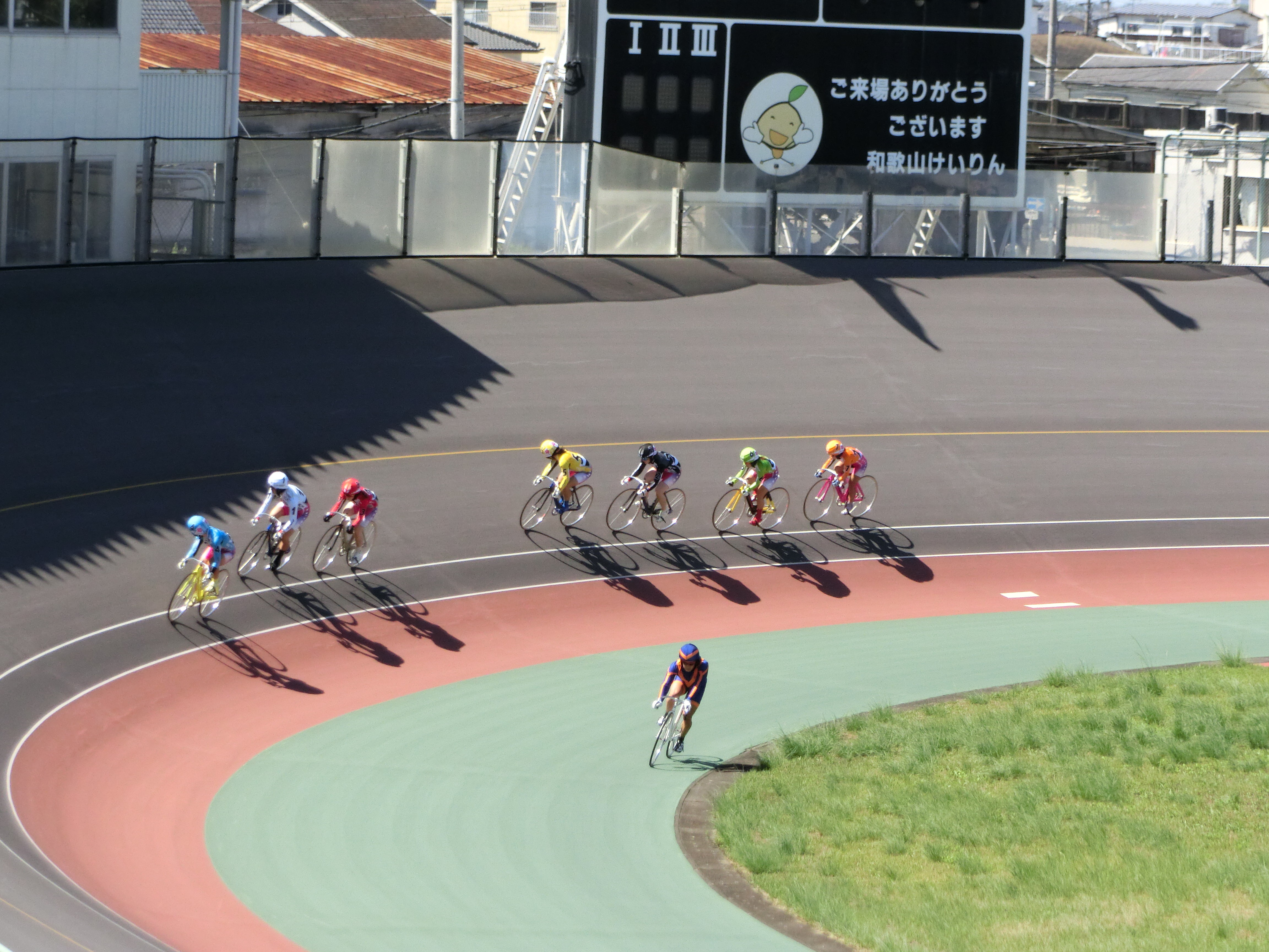 前日と同じルーティンで、会社を経由後、競輪場に到着したのが10時半頃。上空は台風一過の快晴です。ただ風は前日と同様強く吹いていて、ガールズレースはスポーク車輪でのレースとなりました。