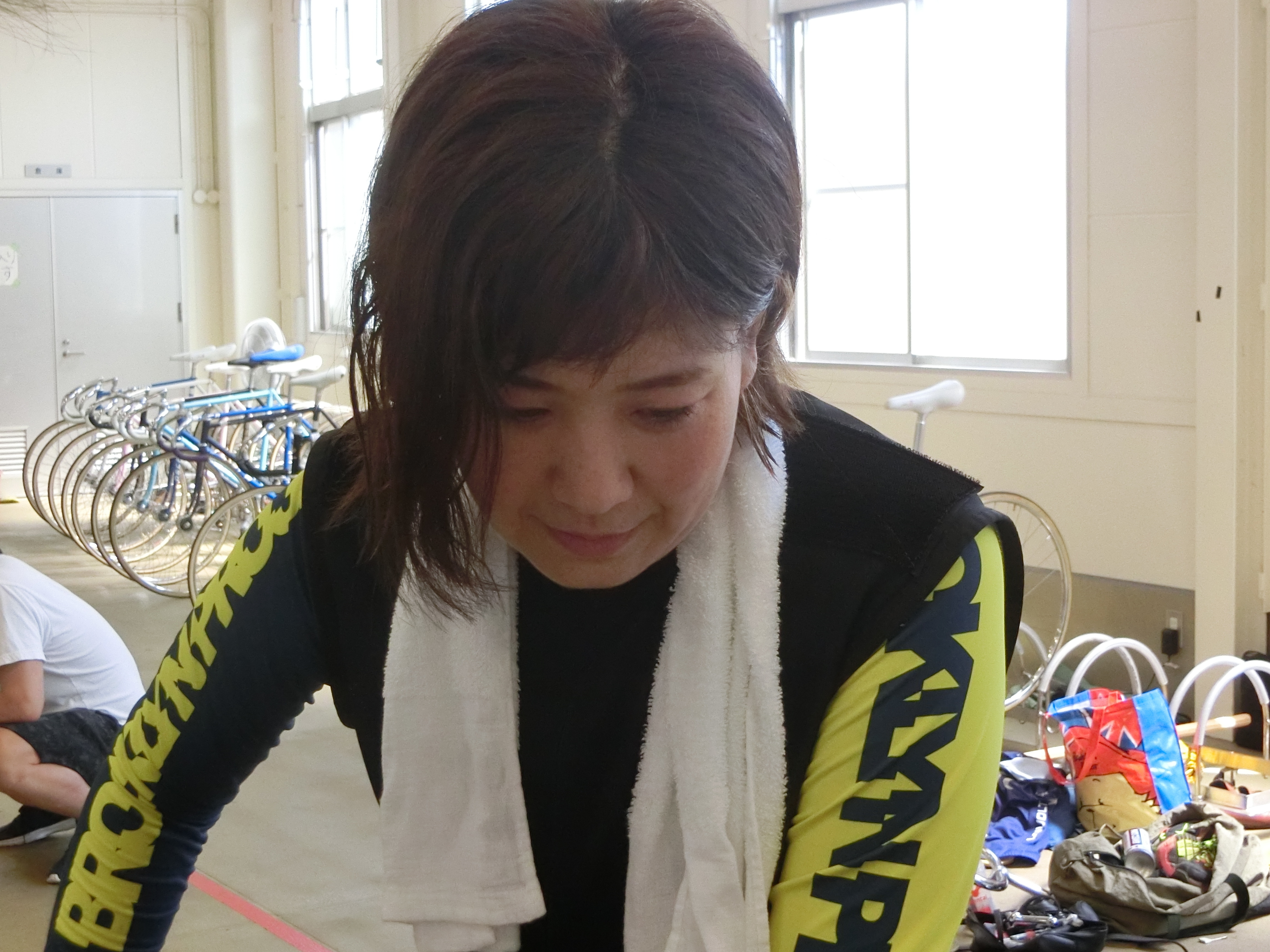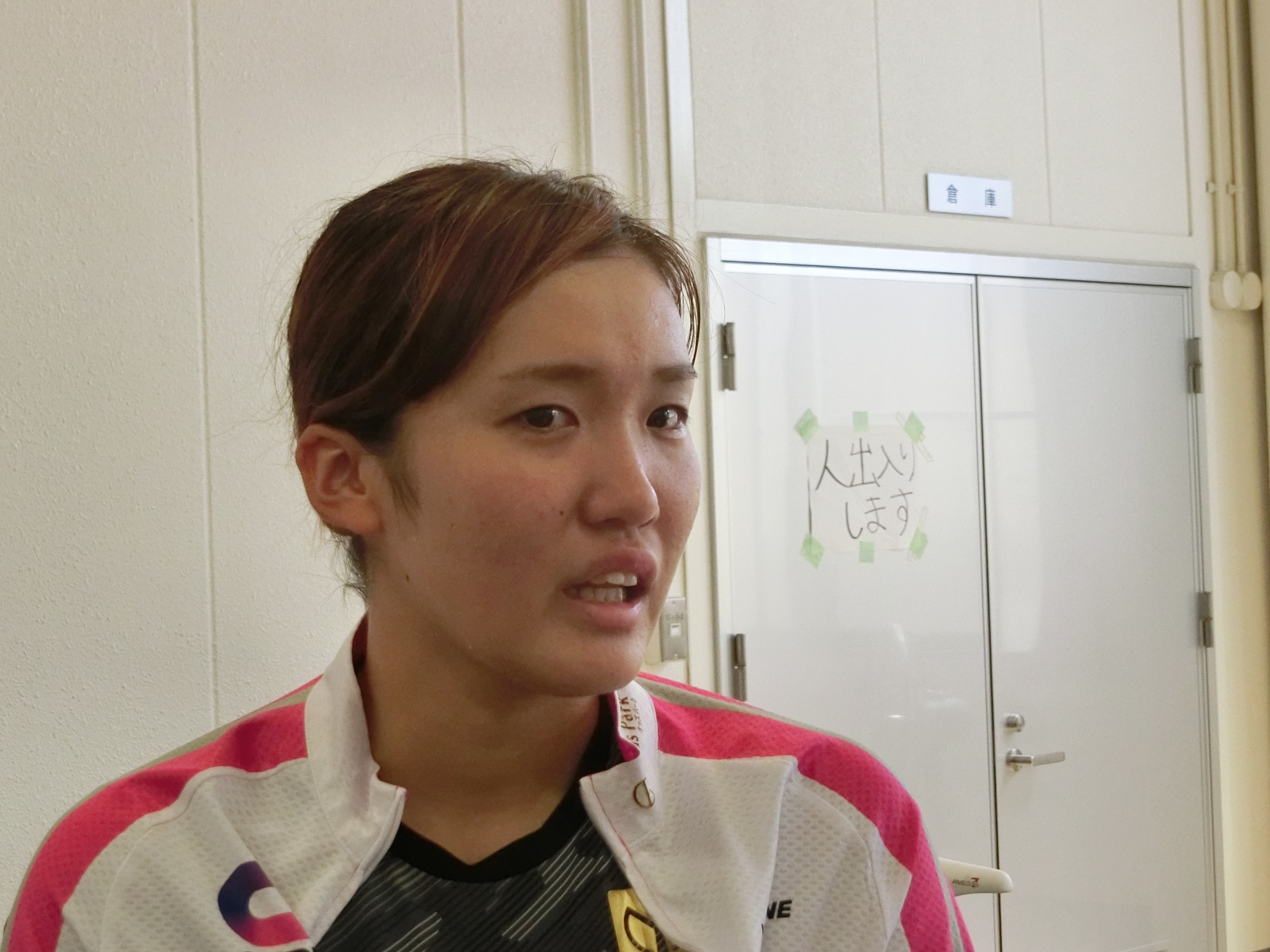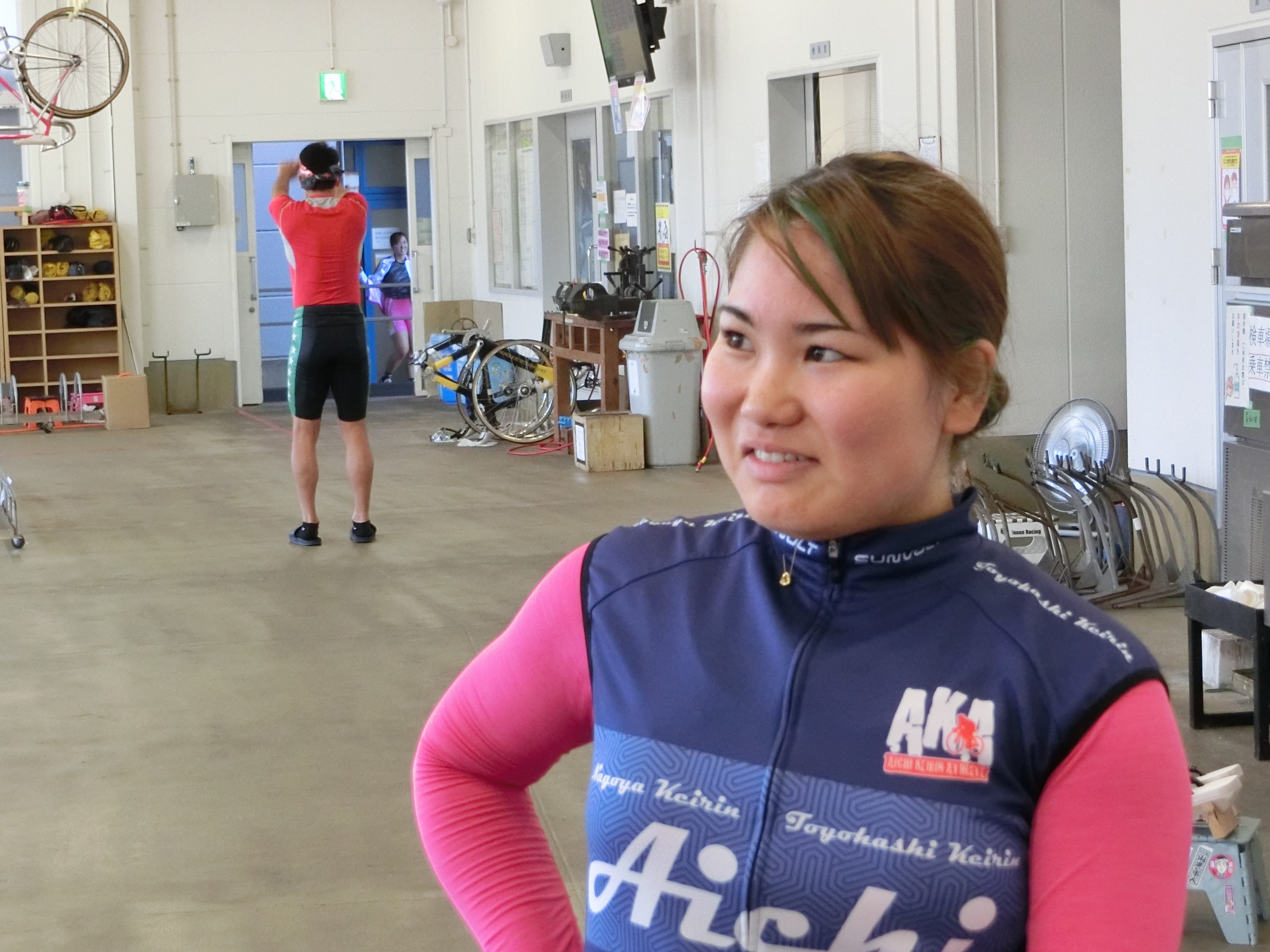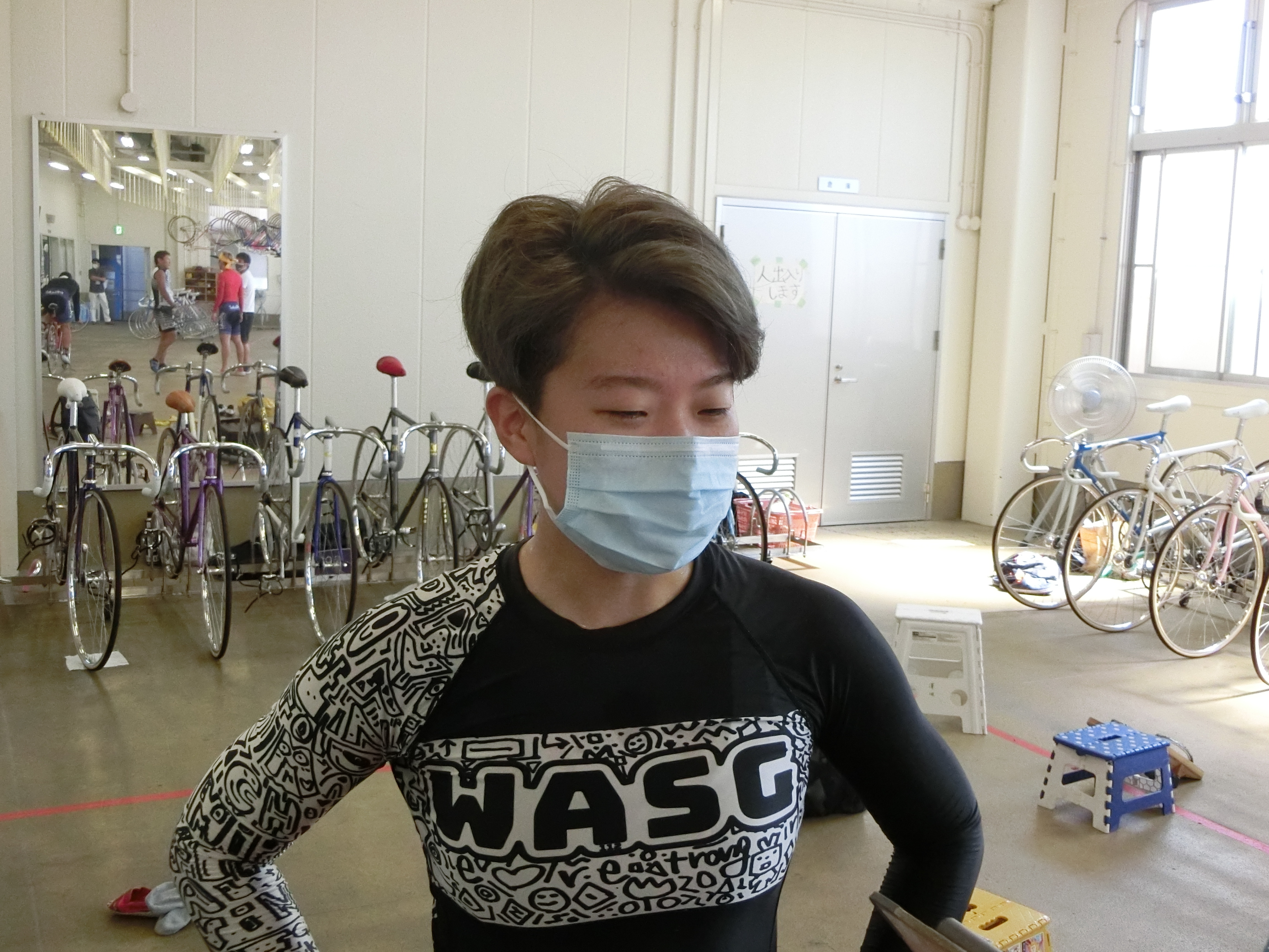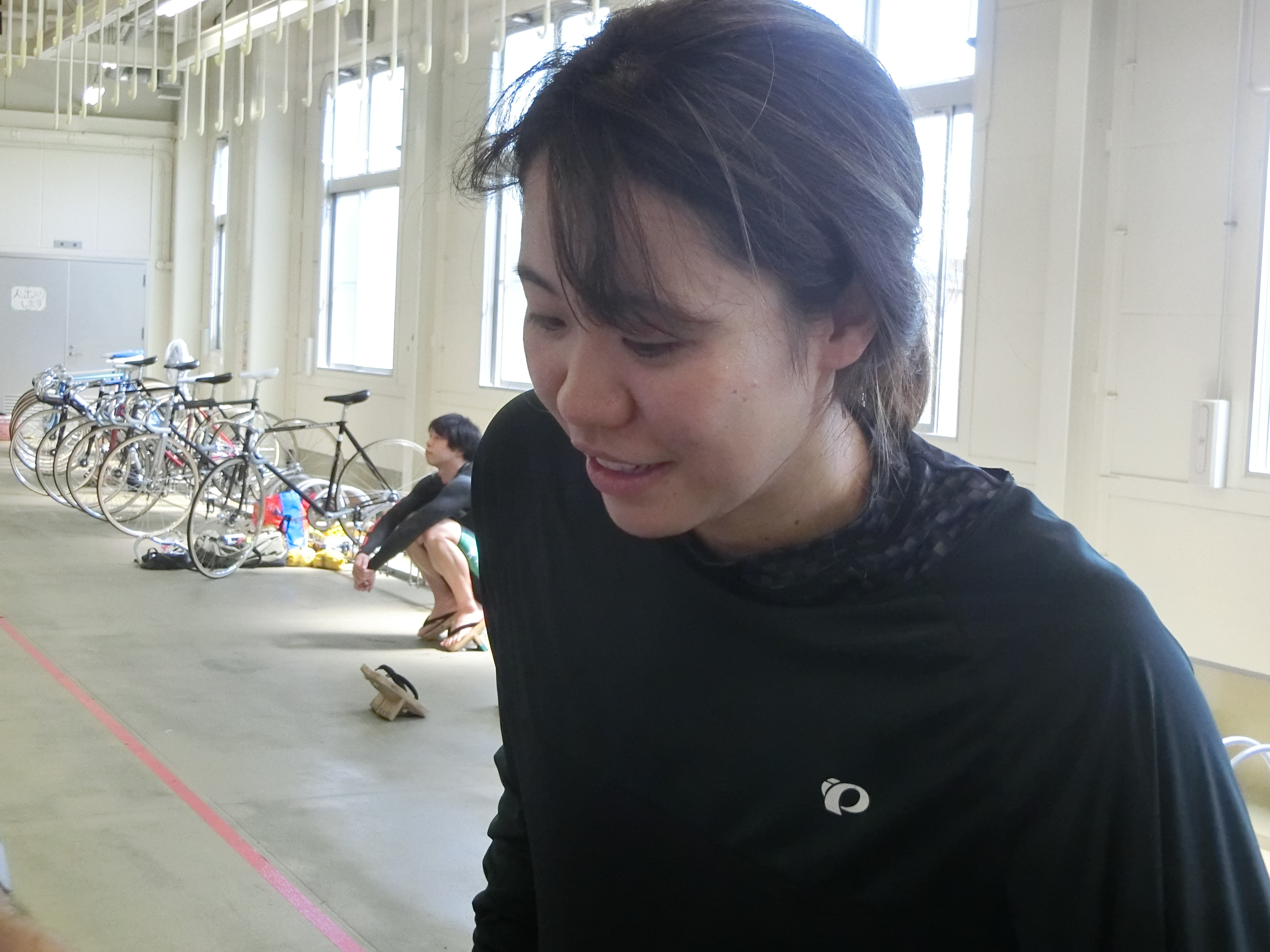 完走した5選手に話を聞こうとしましたが、落車レースになったことで、落車選手への対応などに当たっていてなかなか捕まえることができません。ただレース間隔が長く設定されていたことで、2Rの発走時間までいつも以上に時間があったことから敢えて待つことに。すると徐々に選手達が検車場に戻ってきました。